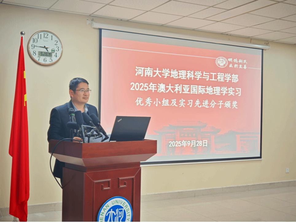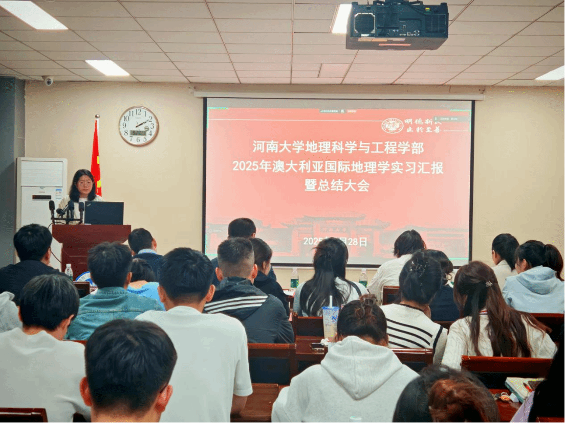 为展示国际地理实习队的实践成果,促进“STEP”教学理念的国际化践行,2025年9月28日,我部于地学楼二楼报告厅举行2025年澳大利亚国际地理实习汇报暨总结大会。本次会议特邀公司党委副书记徐小军、副经理丁志伟、党委书记助理冯文璐、地理科学系副主任朱文博、区域与城市科学系党支部委员张丽君参会,荣邀请澳大利亚墨尔本皇家理工大学刘钢军教授线上参会。会议由2022级辅导员马利群主持。