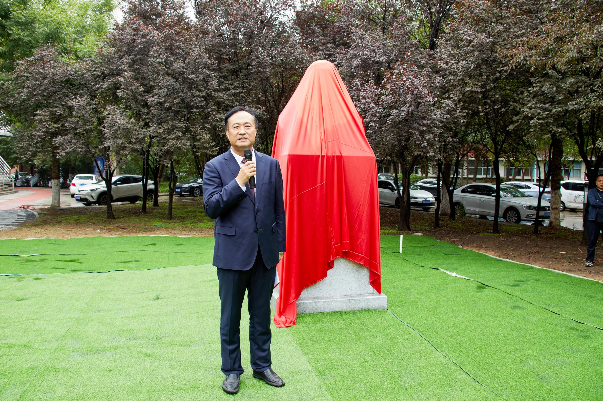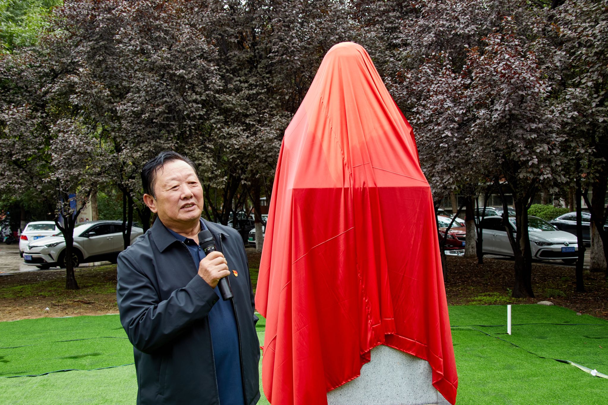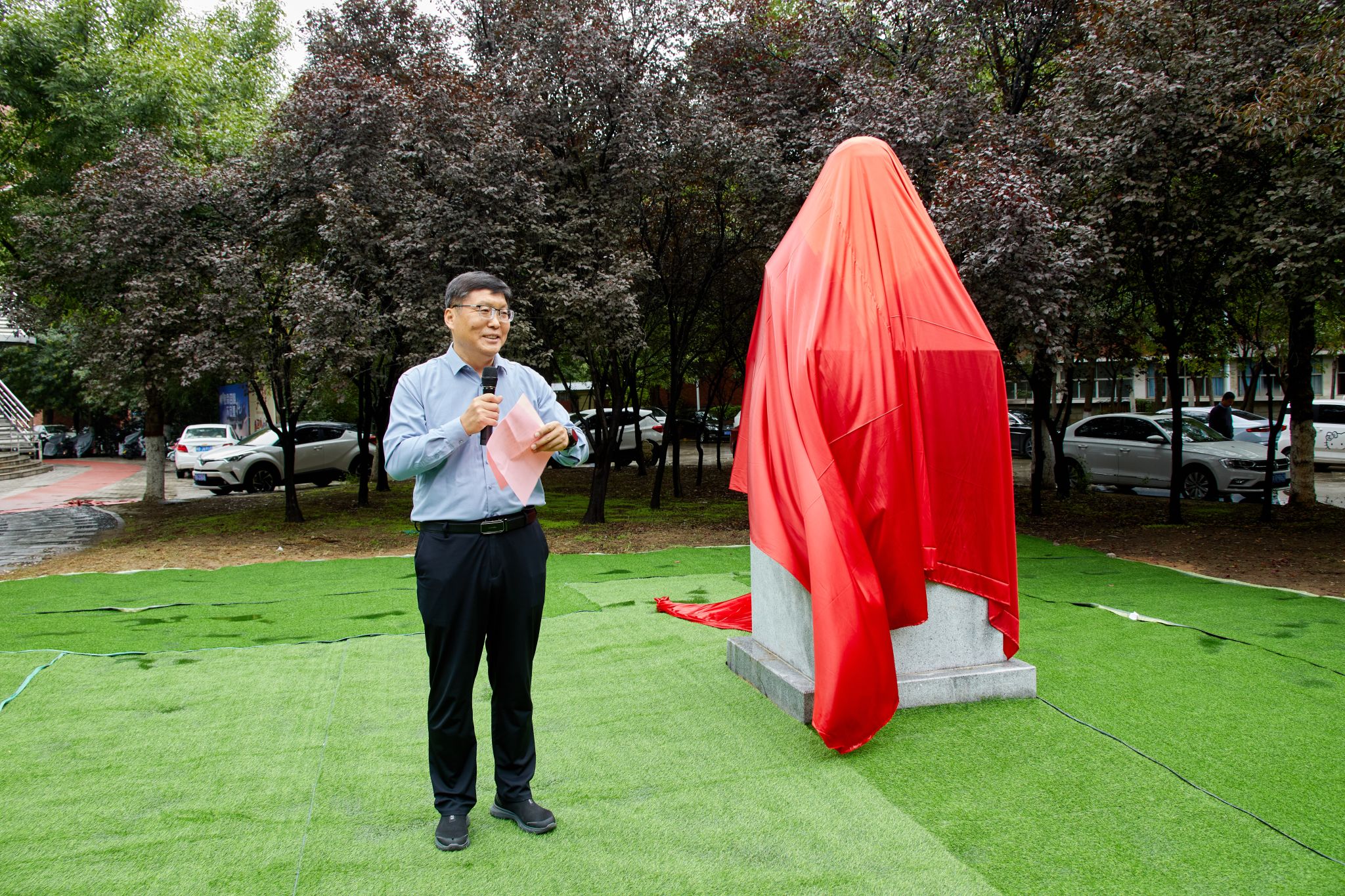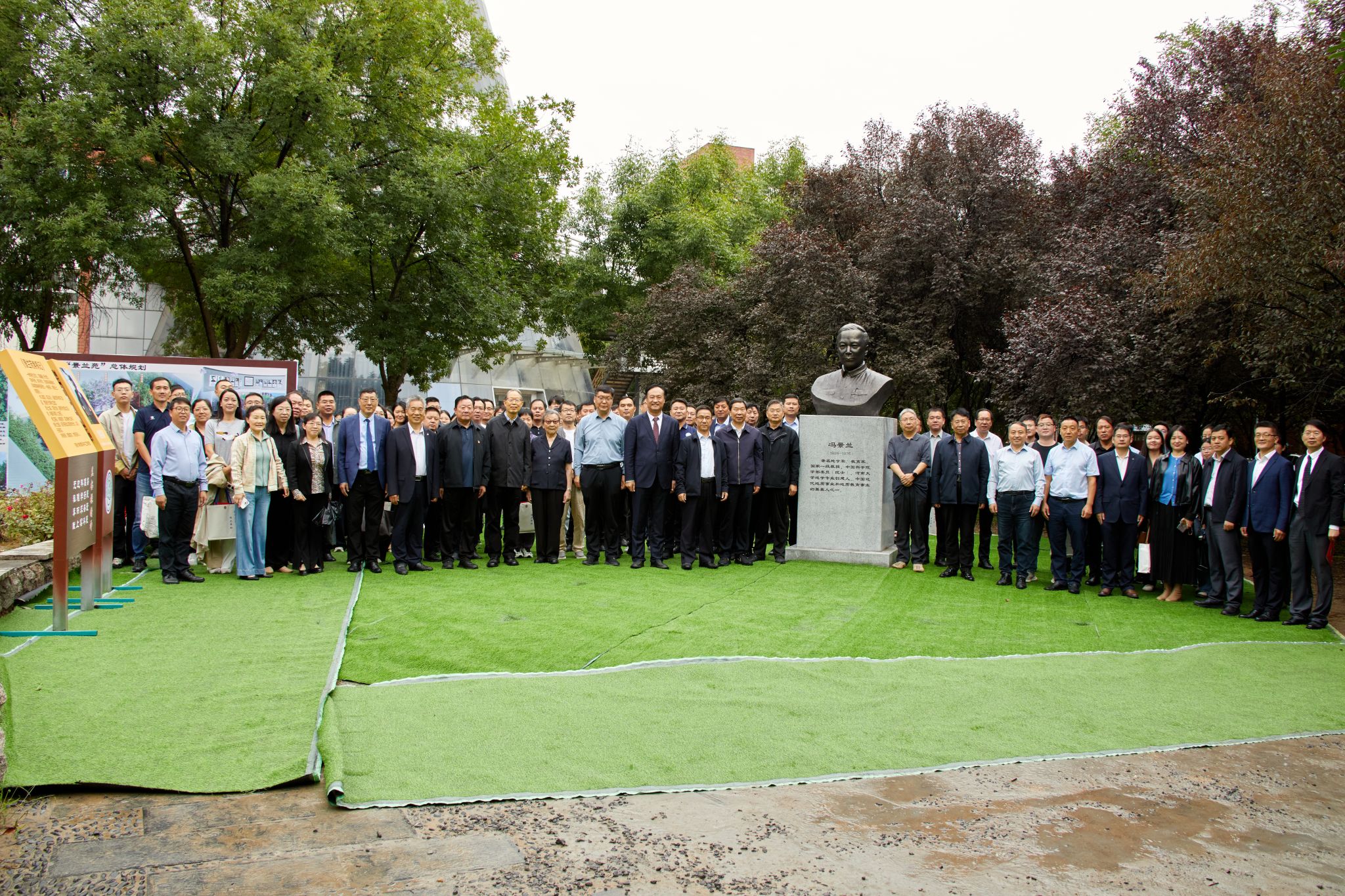 冯钟潮、梁京、杨萌芽、刘彦随、傅声雷、苗长虹、李小建、张占仓共同为冯景兰先生塑像揭幕。随后,张继焦、杨萌芽、刘彦随、傅声雷、苗长虹、李小建、张占仓、张占武为景兰苑“焦桐记”揭牌。在地学楼前、景兰苑中,冯景兰先生睿智的目光和焦桐挺拔的身姿遥相呼应,这不仅是地学家和好书记两位先贤开封情缘的时空交汇,更是两种伟大精神在河大百年学府的光辉绽放。