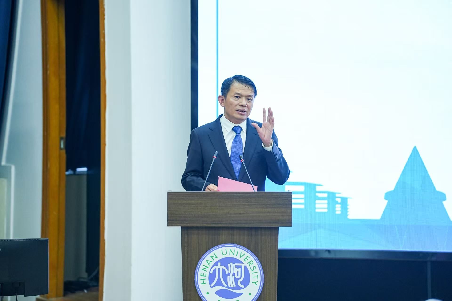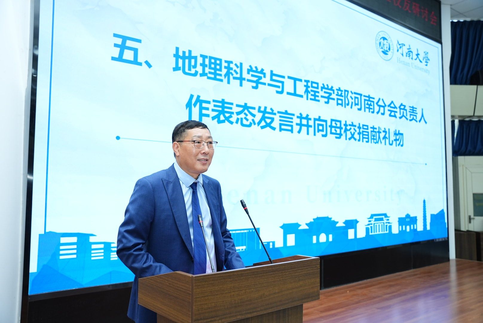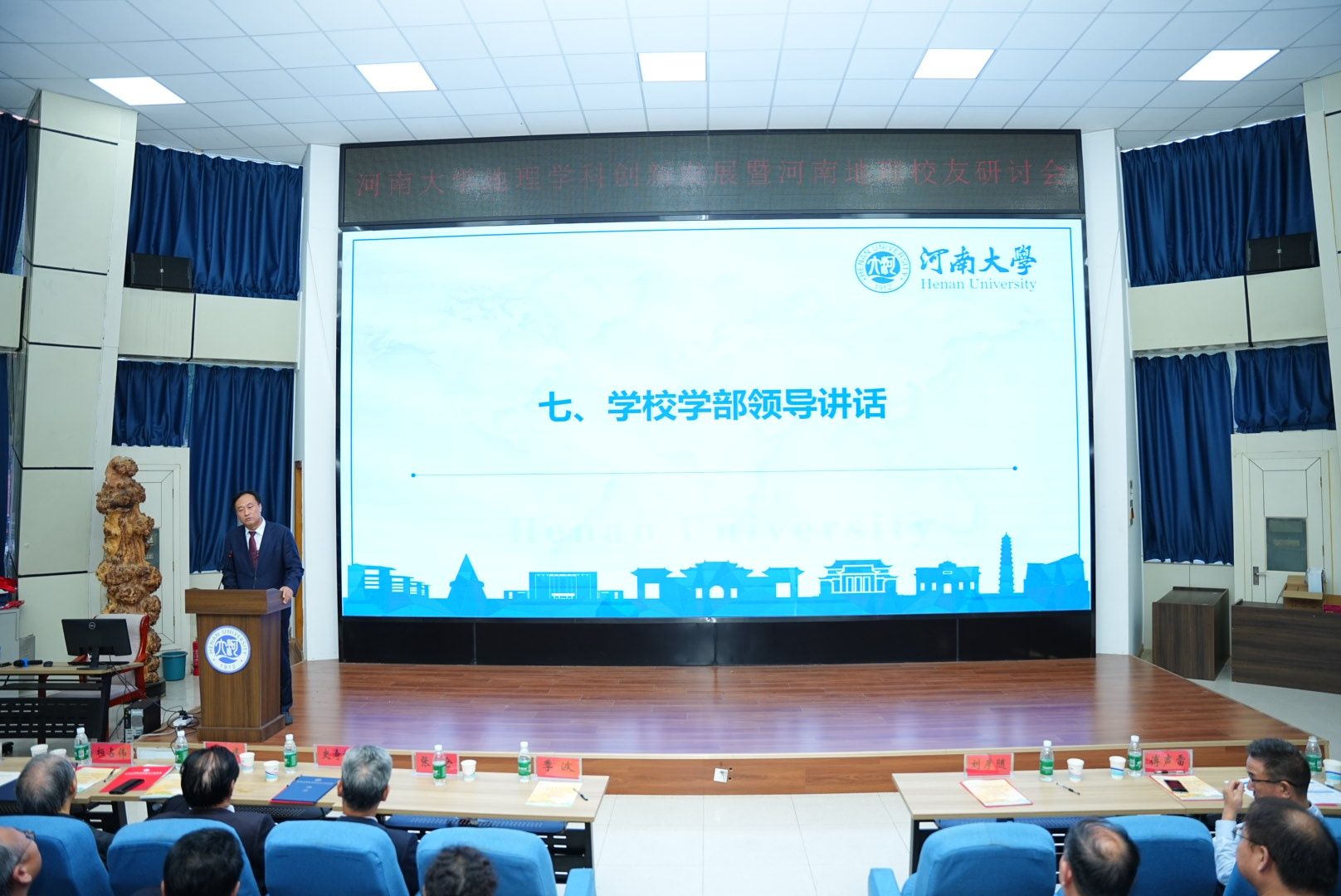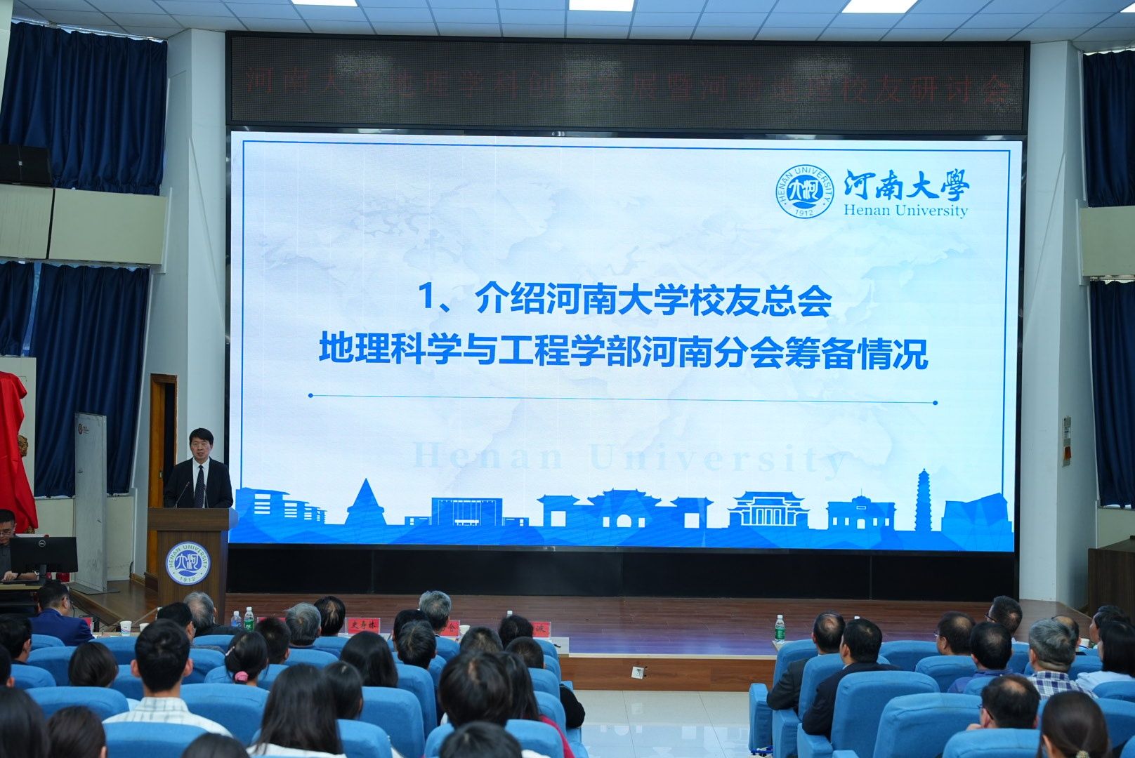 会议开篇,校情篇《大学之道》与地理学部宣传片《河大地学 逐梦山河》缓缓放映,将565net必赢官方网与地理学科的百年脉络清晰铺展。宣传片生动展现了565net必赢官方网自1912年河南留学欧美预备学校创办以来的百年历程,尤其是地理学科自1923年中州大学地学系创立后的发展轨迹。