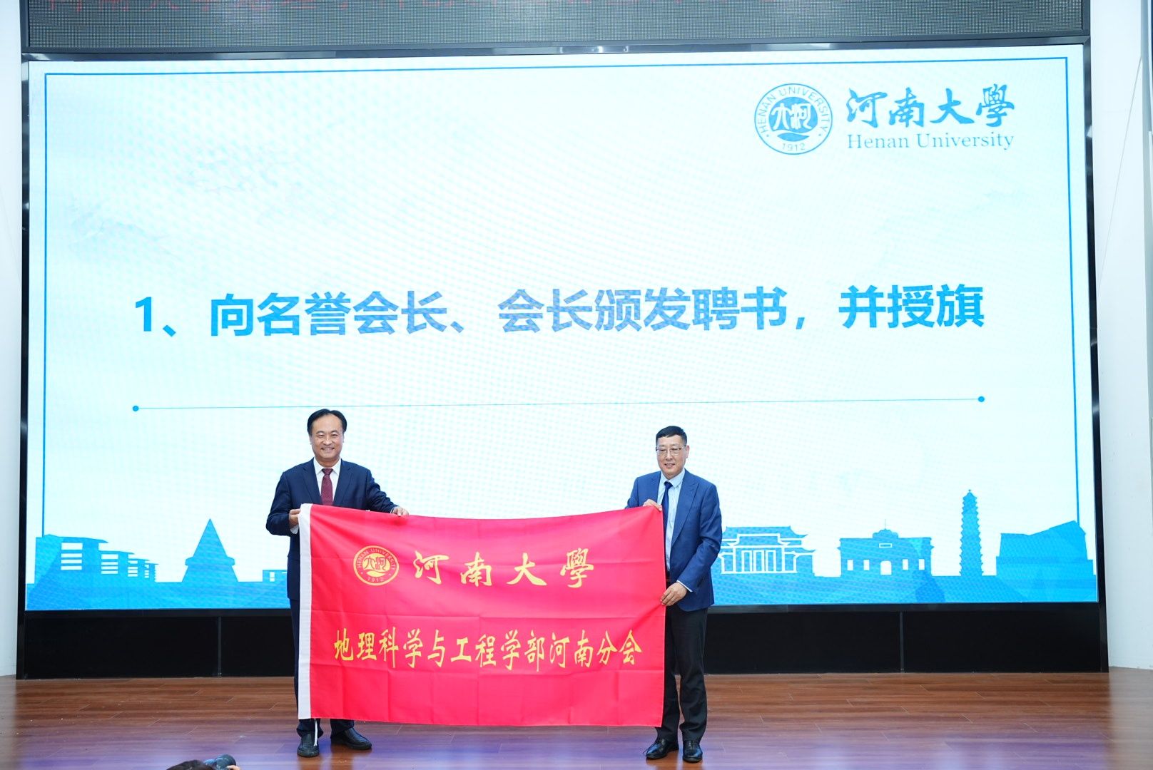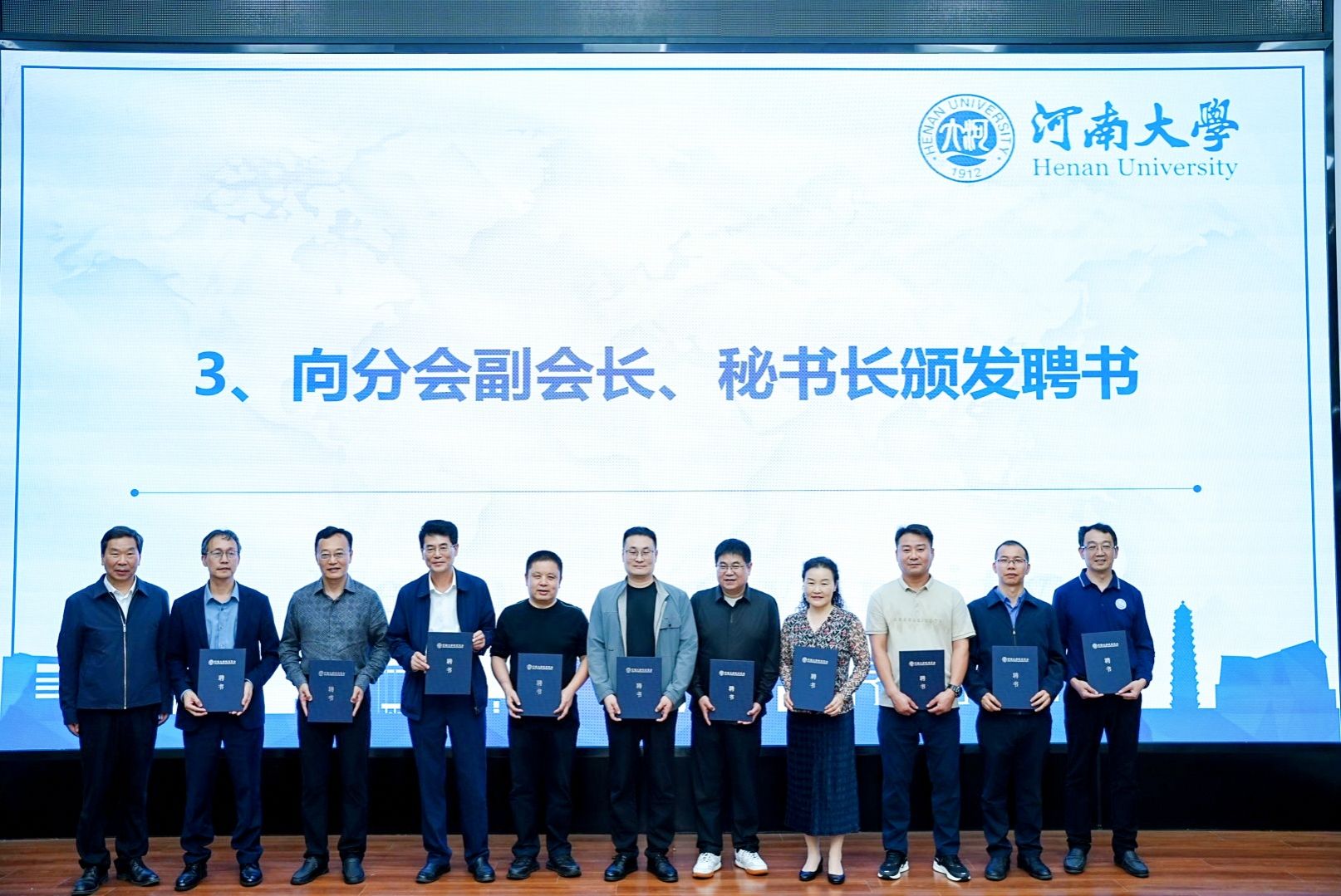 刘彦随、傅声雷、苗长虹、秦奋等分别向分会荣誉会长、名誉会长、会长、顾问、副会长、秘书长、副秘书长颁发聘书。其中,富士康工业互联网股份有限公司监事会主席张占武当选为分会首任会长,河南财经政法大学原董事长李小建院士、河南省社科院原经理张占仓等担任名誉会长,李润田先生担任荣誉会长。