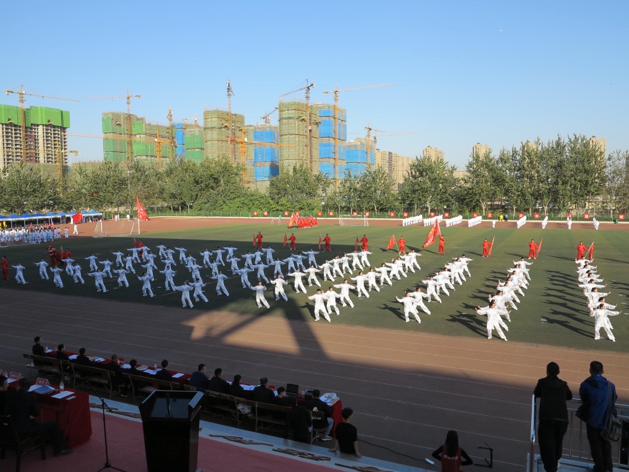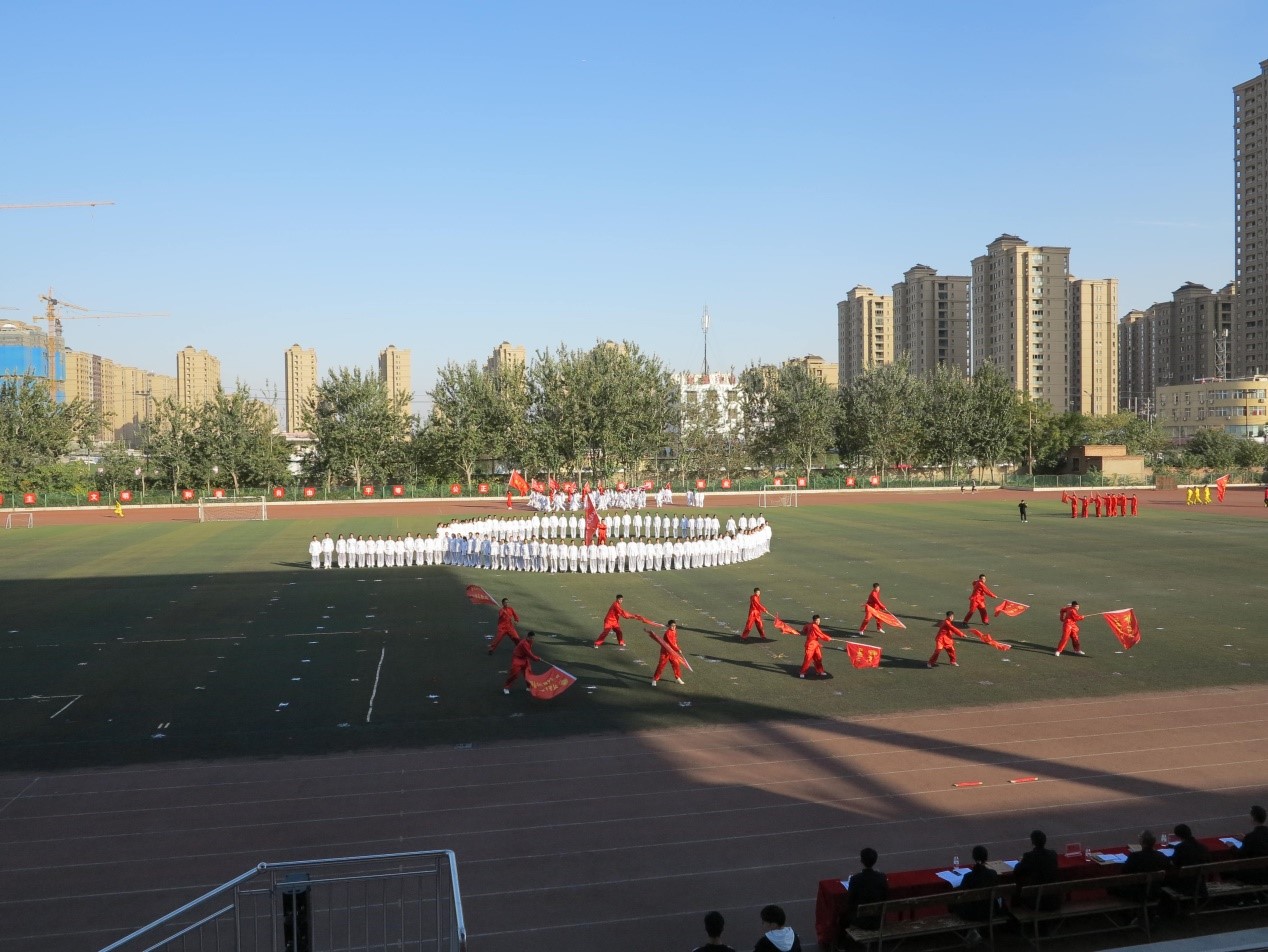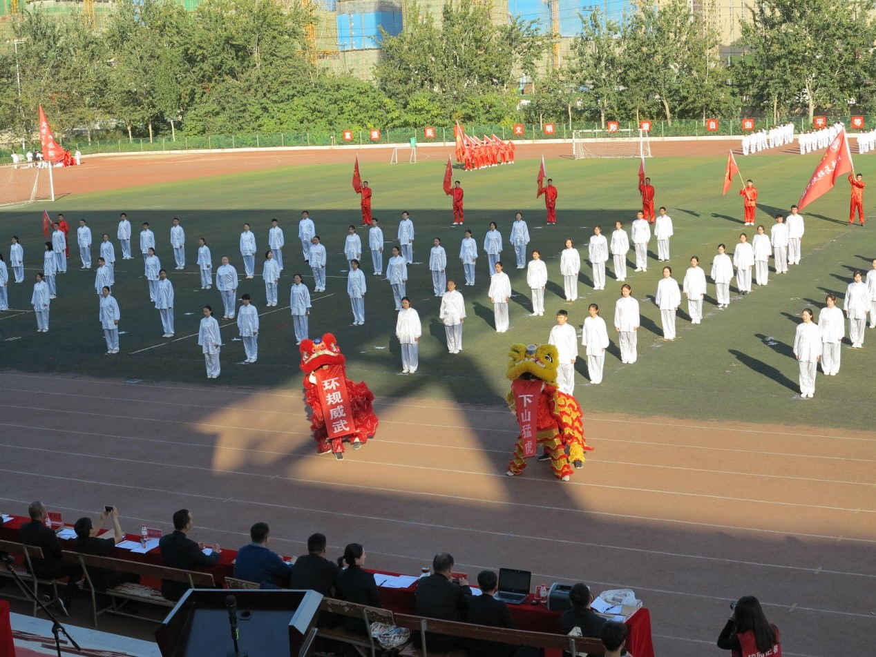 经过一个月的辛苦训练,金明校区26支代表队共千余名研究生参加了此次比赛。作为第十三个出场的参赛队伍,公司代表队十个“大旗”打头阵,奔疾如风,气贯长虹。紧接着由参赛人员组成的四条蛟龙从操场的的斜对角蜿蜒前进,相望成圆形迎接环规“小旗”的舞动,“小旗”个个英姿飒爽,挥旗整齐划一,气势磅礴,两只舞狮在前方表演,赢得台上台下观众阵阵欢呼。参赛人员拳法有力,招式连贯自然、开合有序,一柔一刚之处,百转千回,行云流水的场面尽显沉稳之品性,充分展现了太极拳的无穷魅力。