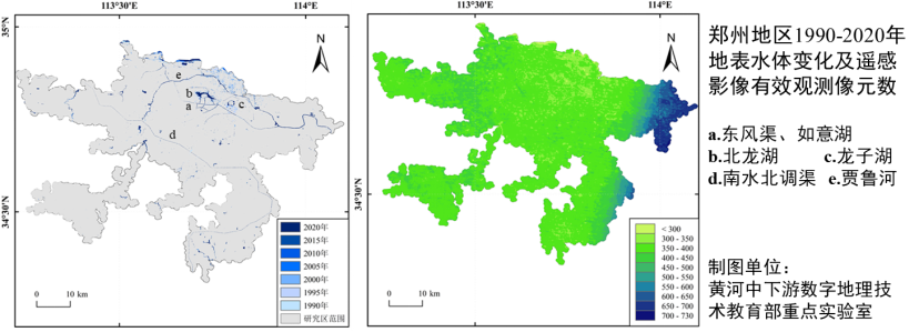 郑州建成区1990-2020年地表水体变化及遥感影像有效观测像元数