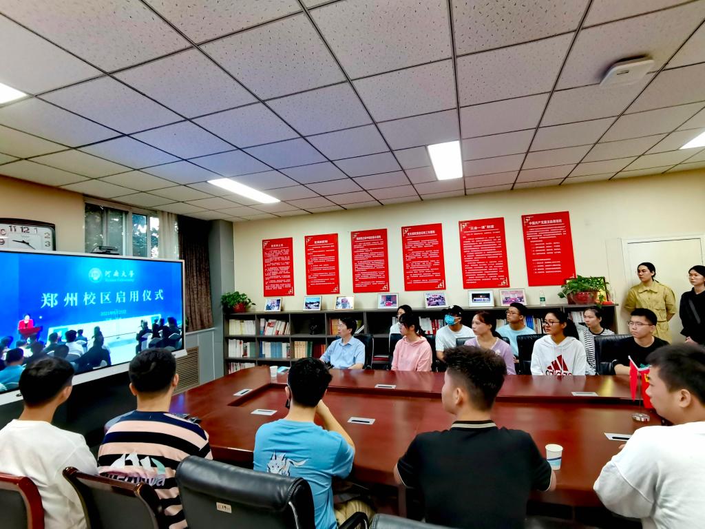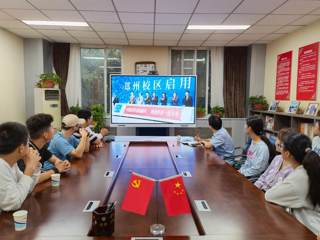观看过程中,各位领导老师和员工相互交流,均表达了对学校109周年校庆和郑州校区启动的祝贺以及对学校110周年校庆和未来高质量发展的憧憬。