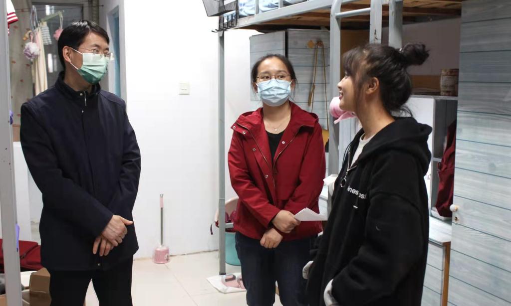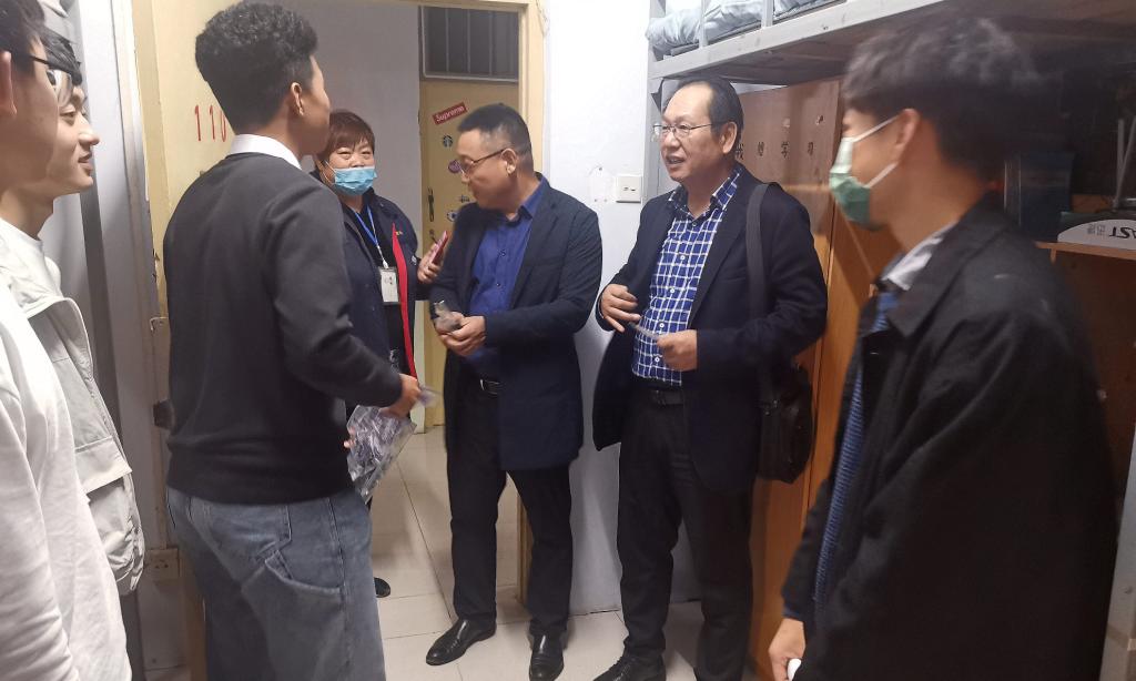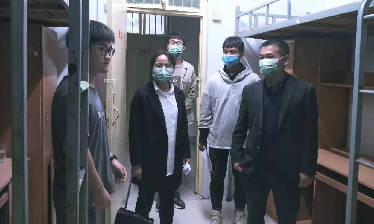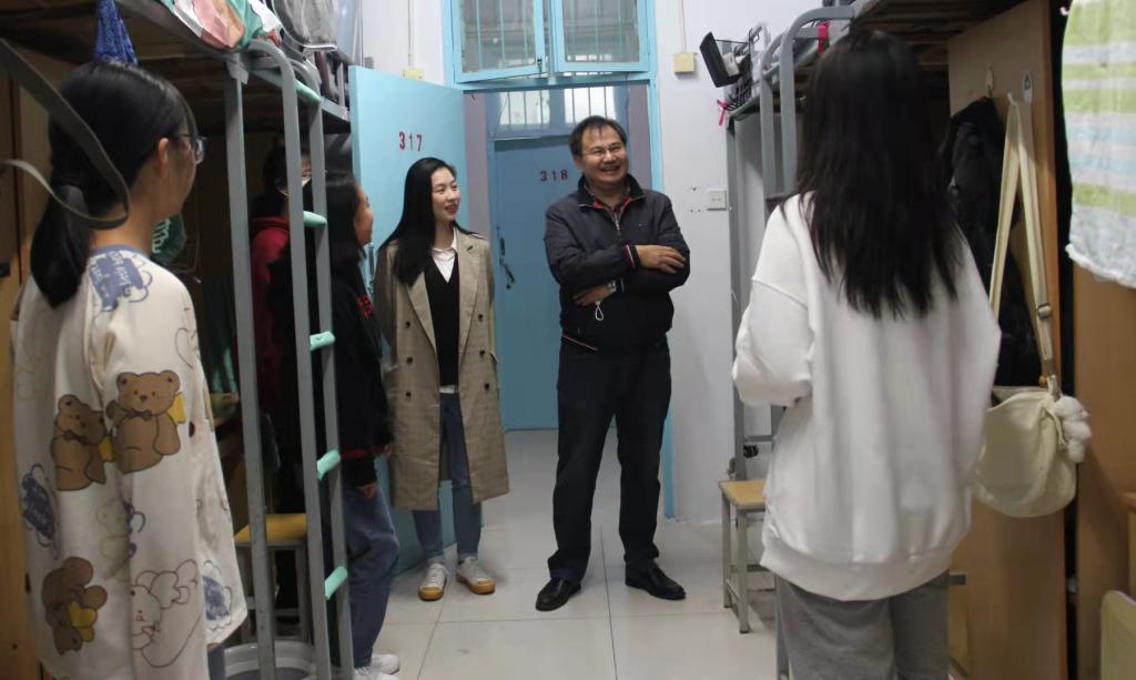 郑洪涛向同学们介绍了学院学习生活的基本情况,叮嘱新生做好疫情防控,鼓励大家相互交流、相互帮助,迅速适应新的学校生活,并对同学们寄予厚望,希望大家能够专注学业,树立远大志向,同时积极参加各项活动,享受校园生活。在了解到一名新生和三名其他年级的员工住在一起时,郑洪涛当即联系有关负责人为该生调整宿舍,将她和同年级员工安排在一起。
