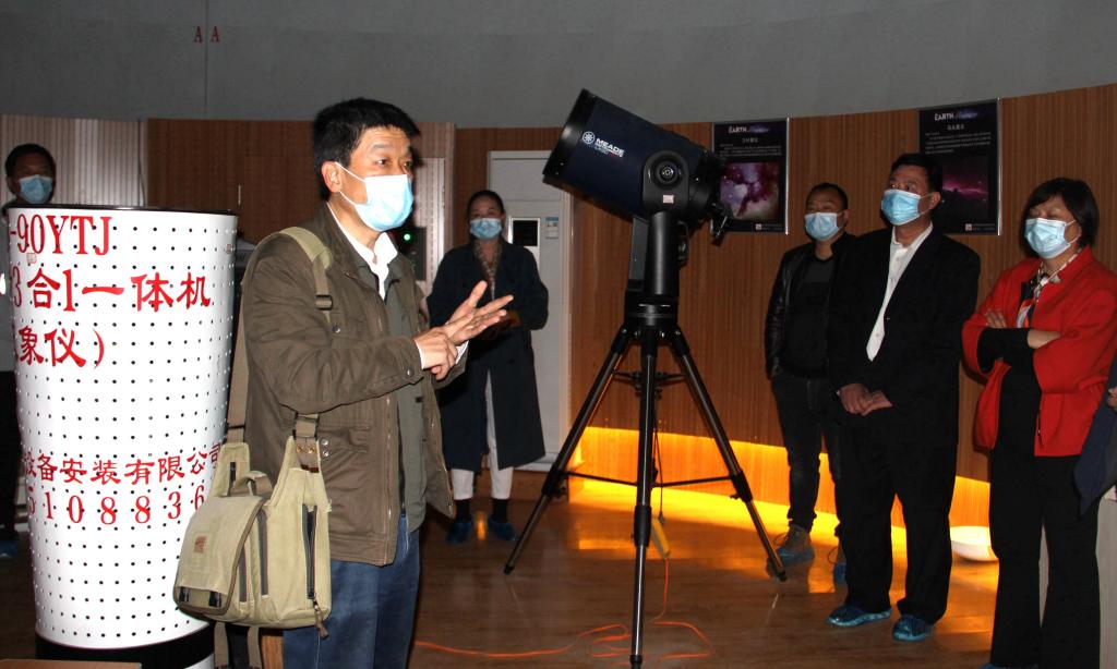 随后,科普团队与员工一起参观观象台,许立民借助天文望远镜等设备为宋城小学教师讲解专业天文知识,分享天文观测经验。他着重阐述了如何在夜空中寻找北极星、如何使用望远镜自动寻星等问题。同时,宋城小学教师带领孩子们探索宇宙,为员工讲述宇宙行星、星云与星座的相关知识。