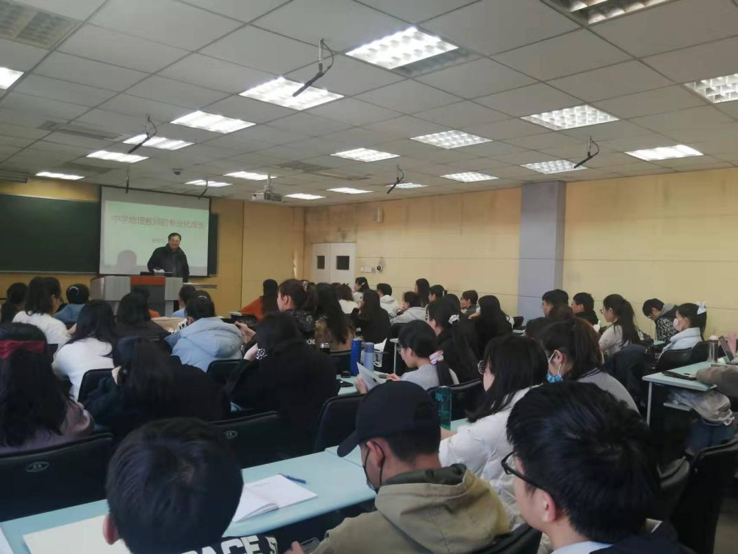 为加强公司地理师范生和学科教学(地理)专业研究生的教师职业理想与职业信念,帮助员工树立正确的教师专业发展观,受公司地理课程与教学论教师张广花的邀请,2021年12月2日开封市第二十五高级中学正高级教师夏继宏在必赢565net官网502教室,结合自身的专业成长经历,就“中学地理教师专业成长”主题跟员工进行了座谈,2019级地理科学专业本科生和2021级学科教学(地理)专业研究生共75人参加。