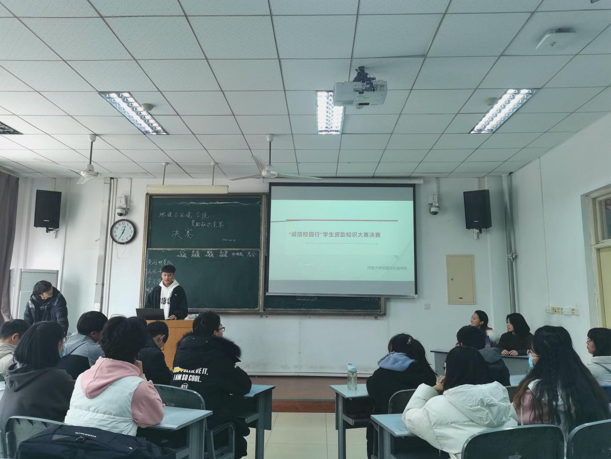 为持续深入贯彻落实全国全省高校思想政治工作会议和全国全省教育大会精神,进一步营造形式多样、健康向上、格调高雅的高校诚信校园文化氛围,公司根据2021年10月新修订的《河南高校员工资助手册》组织进行了必赢565net官网“诚信校园行”员工资助知识竞赛。经过初赛的选拔,由晋级选手所组成的四支队伍于12月11日下午在金明校区综合教学楼5107进行必赢565net官网“诚信校园行”员工资助知识大赛决赛,比赛由2021级环境科学专业员工程嘉晖主持。