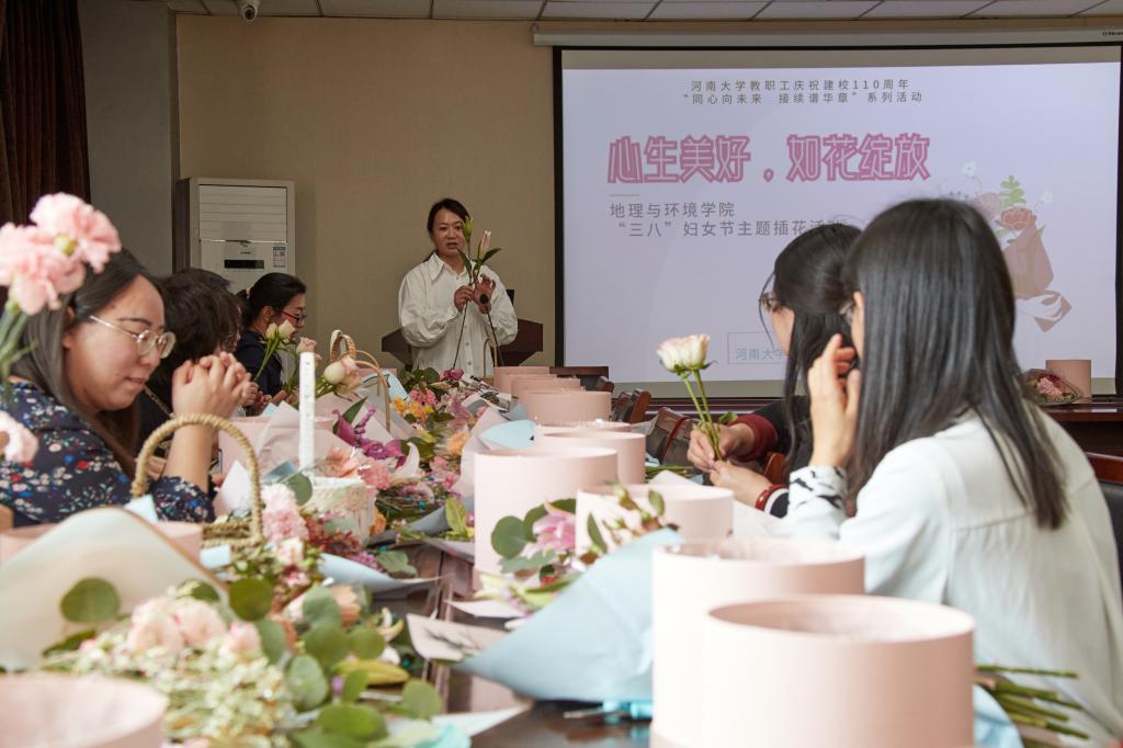 为庆祝565net必赢官方网建校110周年、纪念“三八”国际劳动妇女节112周年,丰富广大女职工的精神文化生活,3月7日中午,由公司工会委员会、女工委员会主办的“心生美好,如花绽放”主题插花活动在学院二楼报告厅举行。公司副经理、工会主席邱永宽,副经理赵威,党委副书记徐小军出席活动。