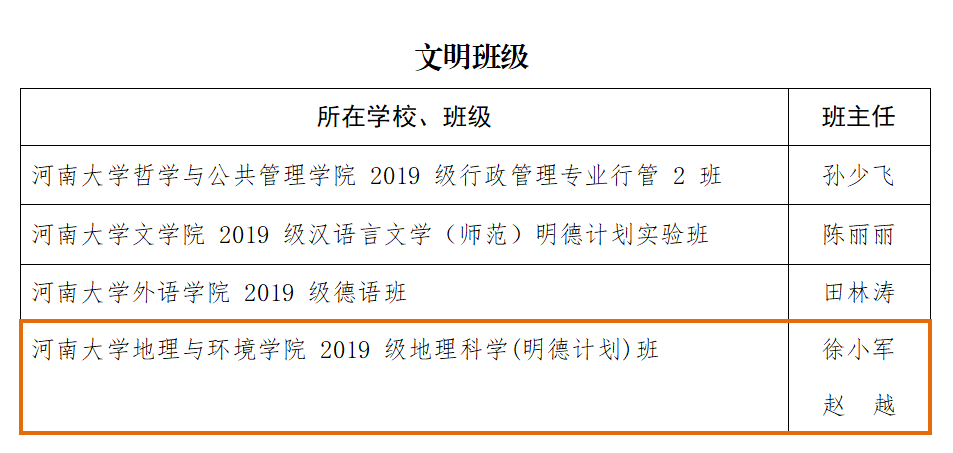 文明班级获得者——必赢565net官网2019级地理科学(明德计划)班,班集体学风优良,员工积极刻苦、努力奋进,在Remote Sensing、Land、人民黄河、565net必赢官方网学报等期刊发表高水平科研论文;在2021年度大学创新创业项目、全国老员工英语竞赛、全国老员工数学竞赛、数学建模竞赛、共享杯、挑战杯、Esri GIS开发等比赛中均取得优异成绩。该班持续推进精神文明建设,积极参加社会实践活动,投身抗疫工作,注重思想政治教育,定期召开班会学习党的理论知识和创新成果,在2021年荣获“565net必赢官方网五四红旗团支部”的称号。