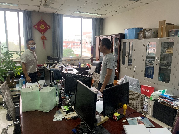 8月29日开始,邱永宽副经理带领疫情防控小组对学院所属区域的疫情防控、消防安全和防汛工作进行排查,并根据对公司在校员工情况的具体了解安排了相应防控措施。疫情防控小组首先对地学楼进行排查,尤其对五楼和六楼的实验室安全进行详细查看,督促坚守在实验室的同学要注意水、电、气的使用安全,要求每日做到人离、气闭、水关、电断。此外,疫情防控小组还详细查看了地学楼顶层的漏水修复工作。随后,疫情防控小组又依次对人文楼、实验教学示范中心、生态地理学实验室、未来农业试验田、土壤重金属污染修复中试基地等区域进行认真巡查,了解了区域内同学的学习和生活情况,详细查看正在运行的实验仪器,并鼓励同学们坚持一边抗疫,一边保证正常学习和生活,同时督促仪器操作人员要特别注意管控期间的实验室安全,保证试验田正常运转。