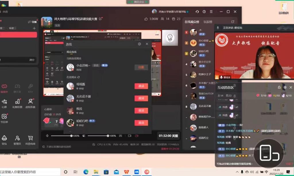 本次活动形式分为歌王争霸赛和百变配音秀,两个模块分开评奖。活动共计作品征集和线上直播两个阶段,参加者在11月1-14日提交参赛作品至活动负责人邮箱,16-18日通过微信投票小程序开展广大网友的线上投票,并结合青协工作人员的内部投票,于19日核算出最终获奖结果,20日下午通过腾讯会议与抖音同步直播的形式公布获奖名单并展示优秀作品。同时这次的线上直播也邀请到了565net必赢官方网因素吉他协会和御风配音社的成员进行表演,让观众们进一步感受到了声音的力量和美。