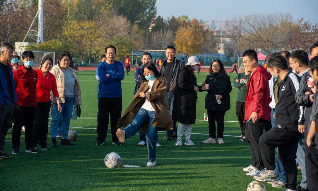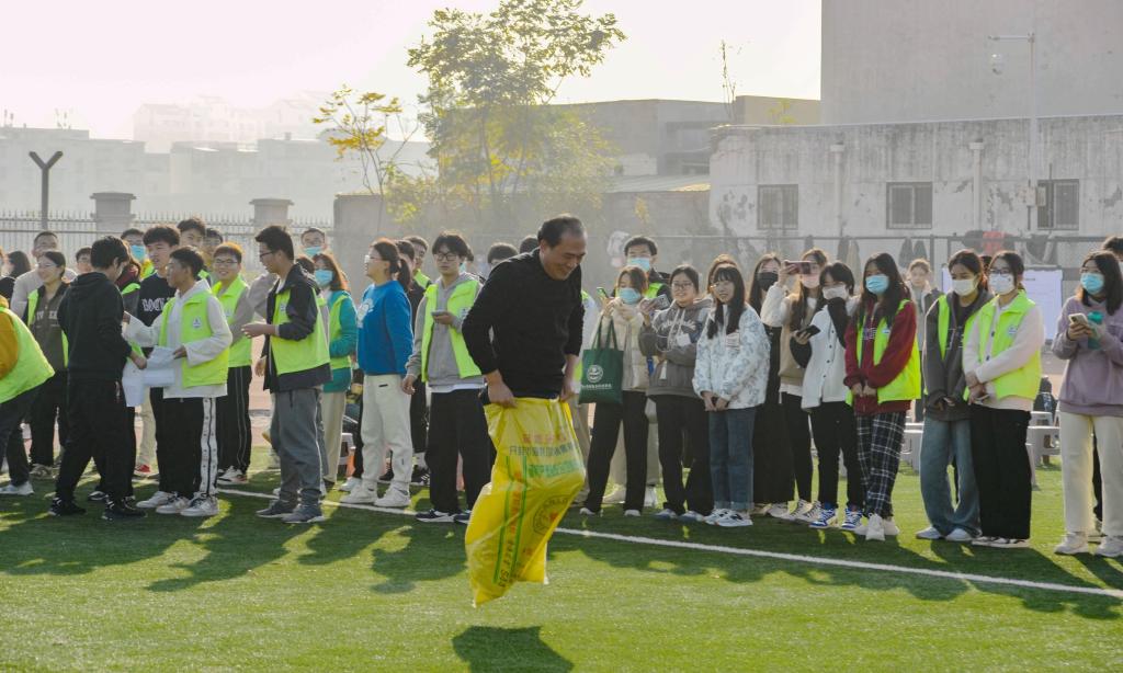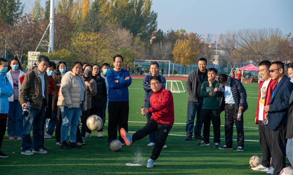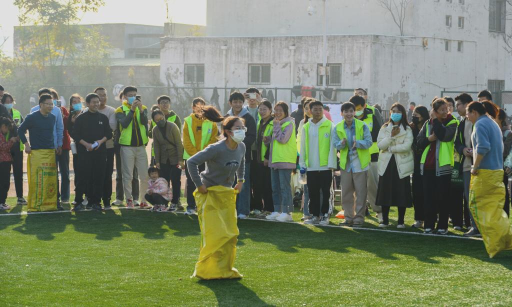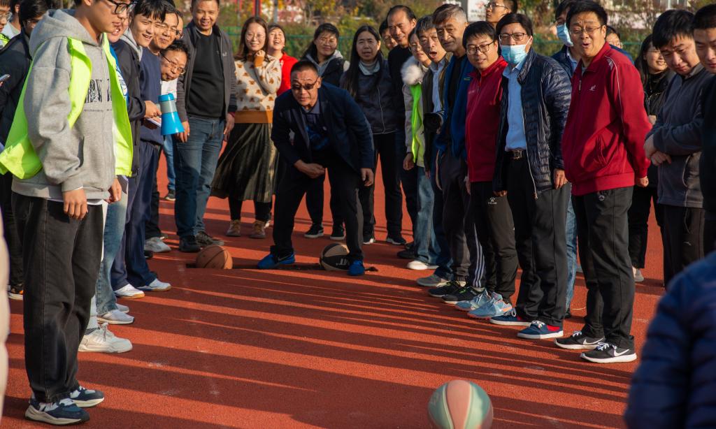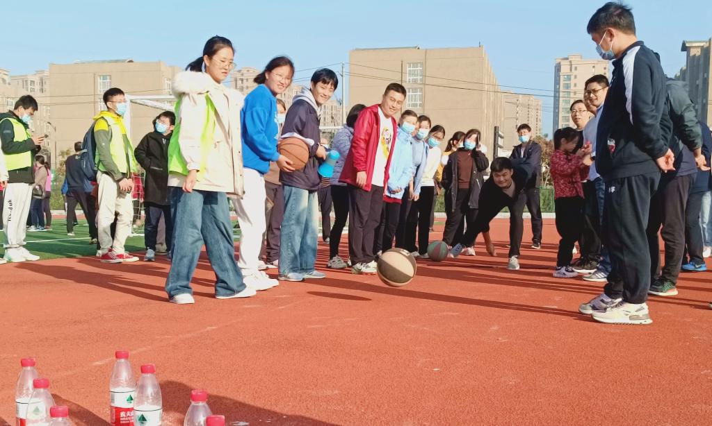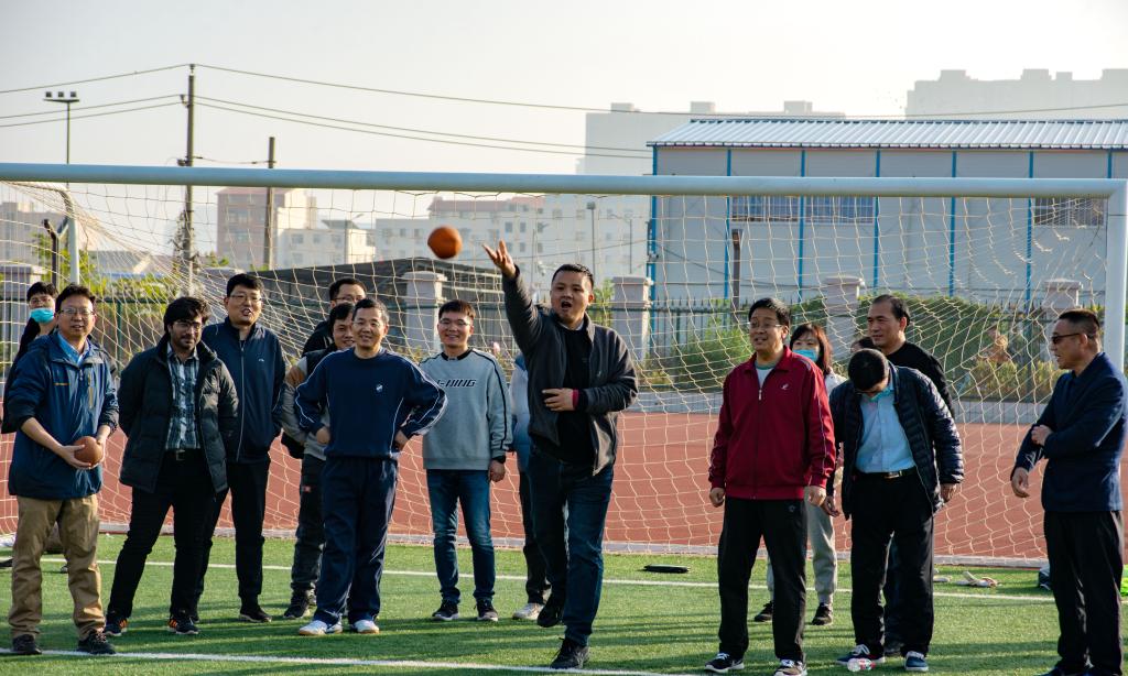 全体教师到场后,副经理、工会主席邱永宽作赛前讲话,他希望全体教职工都可以借此次机会展现出自己昂扬向上的精神风貌,赛出水平,赛出风格,在之后以更饱满的状态投入到工作中。活动在全体教师绕操场慢跑一圈后正式开始,共分为袋鼠跳接力、沙包背抛、趣味保龄球、点球大战四个项目。