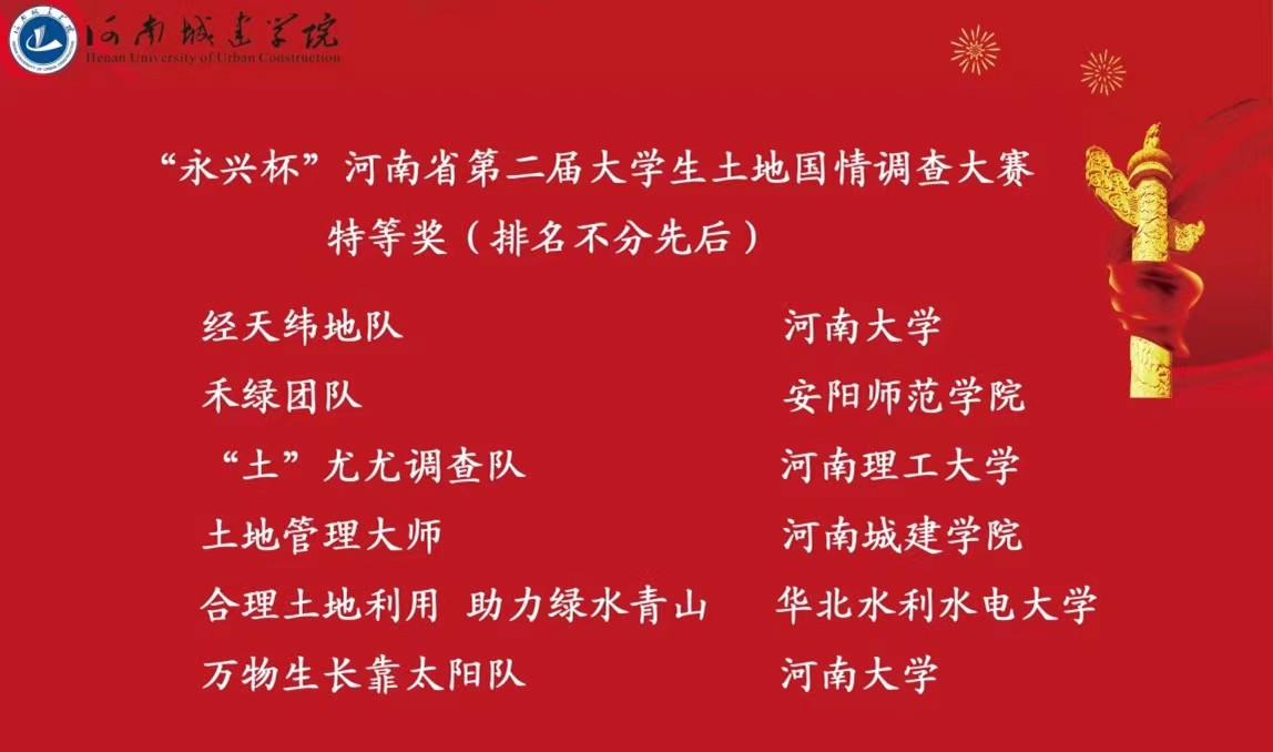 土地是人类赖以生存和发展的物质基础和自然资源,也是可持续发展的重要生产资料, 为优化国土空间格局、践行国土规划建设,教育部高校公共管理类学科专业教学指导委员会、河南省土地学会分别举办了“国地杯”第四届全国老员工土地国情调查大赛和“永兴杯”河南省第二届老员工土地国情调查大赛。我院学子积极参与上述两项比赛,均入围决赛,荣获多个奖项。
