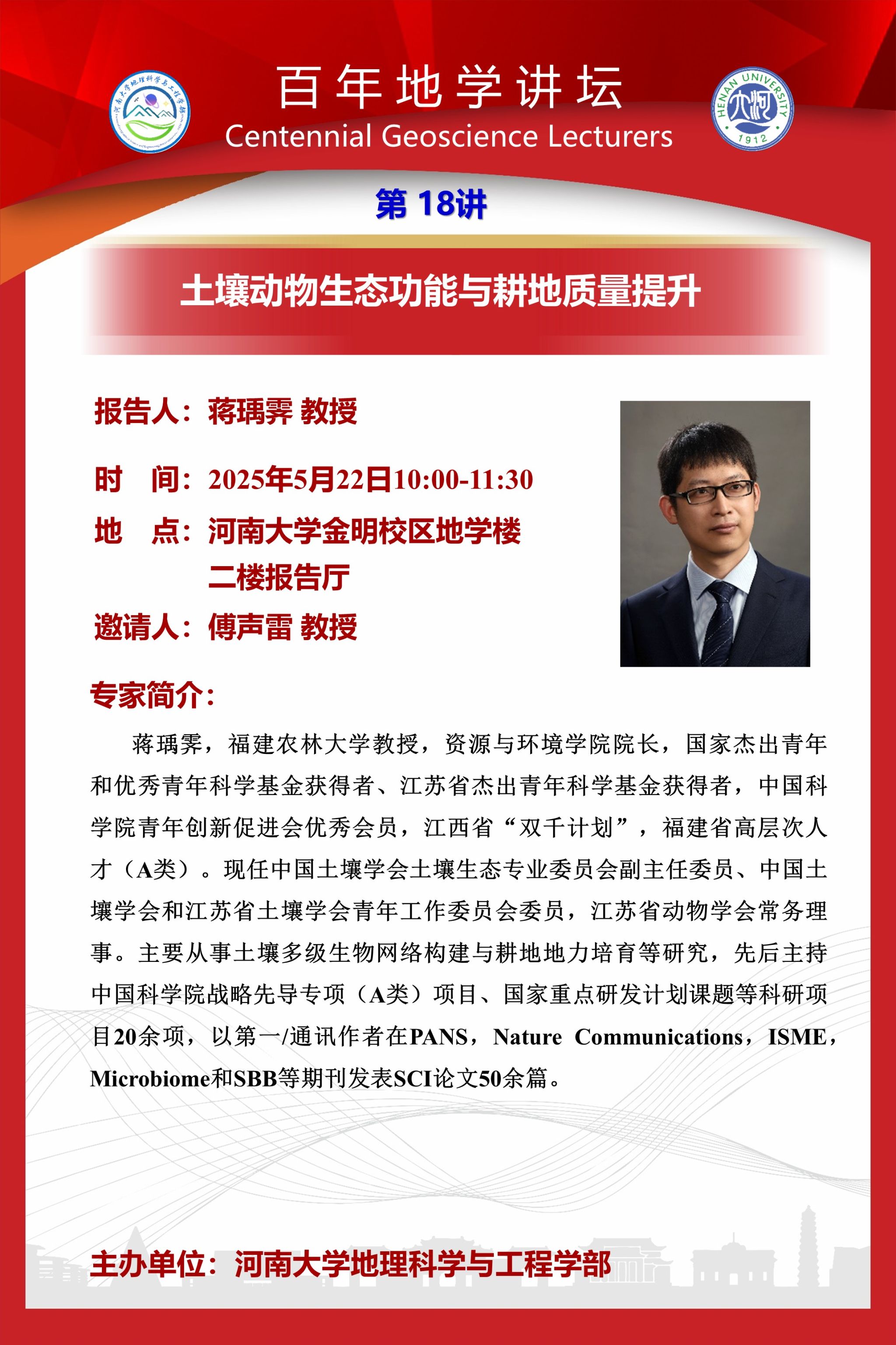 百年地学讲坛|土壤动物生态功能与耕地质量提升