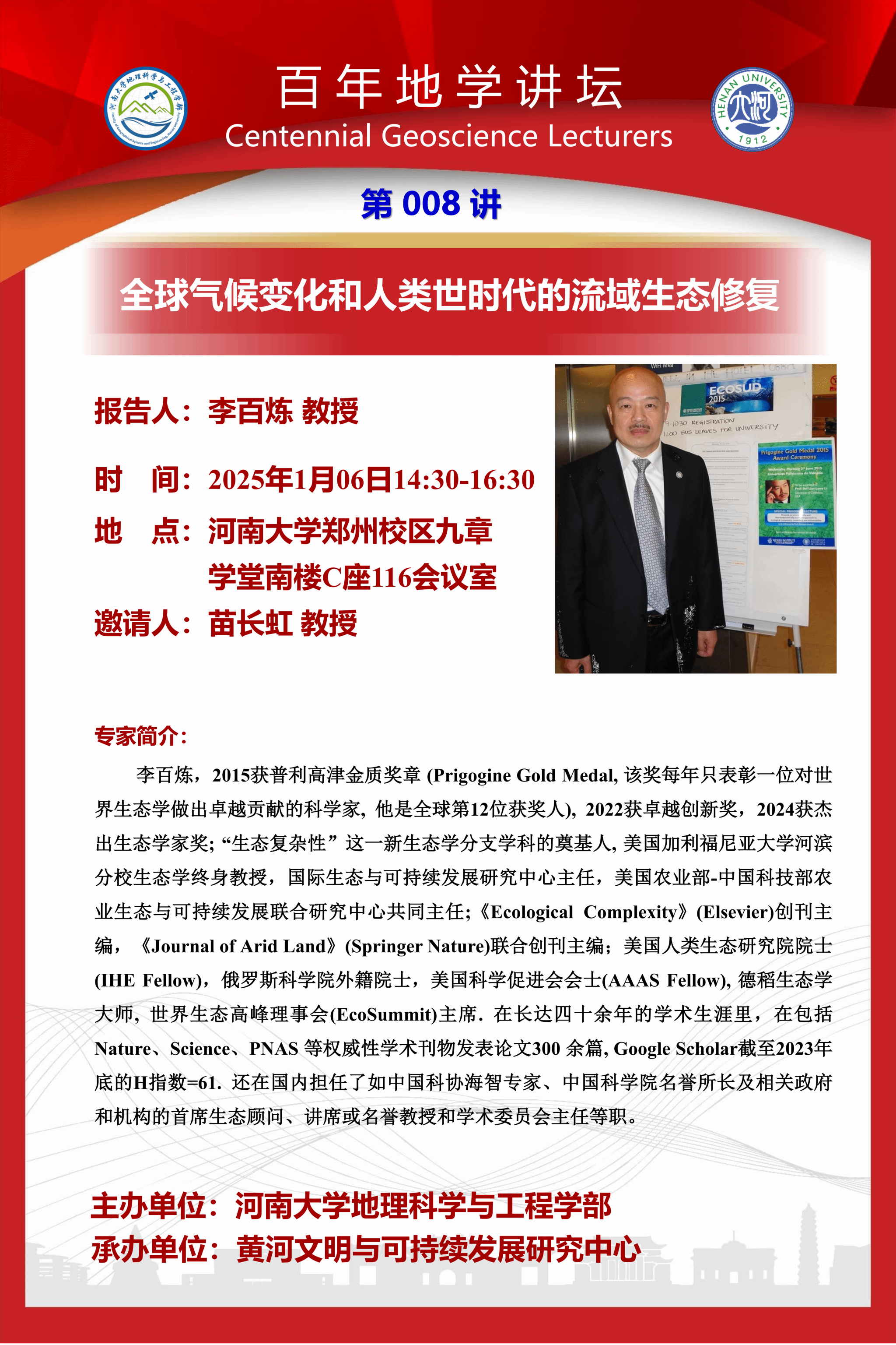 百年地学讲坛|全球气候变化与人类世时代的流域生态修复