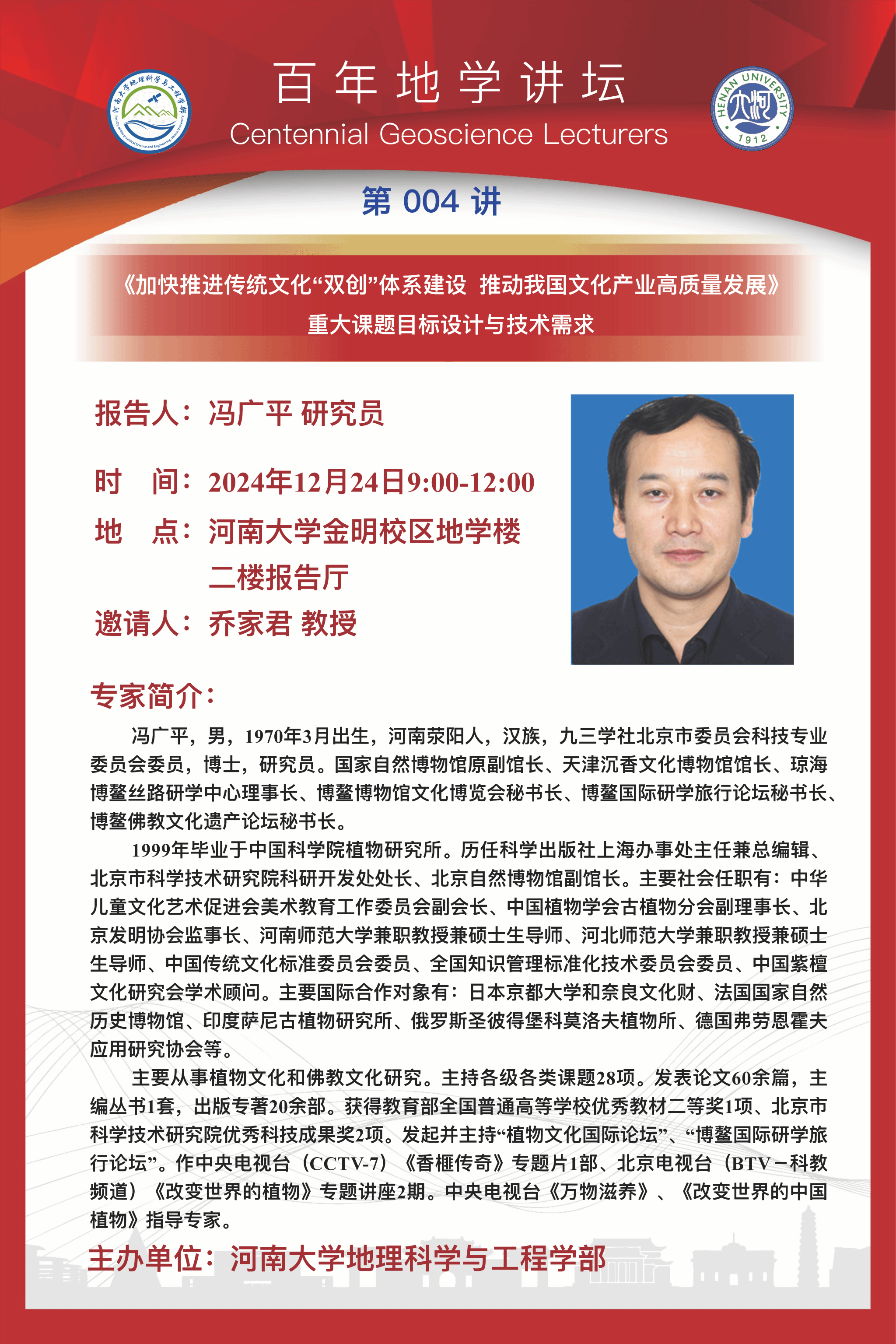 百年地学讲坛|《加快推进传统文化“双创”体系建设 推动我国文化产业高质量发展》重大课程目标设计与技术要求
