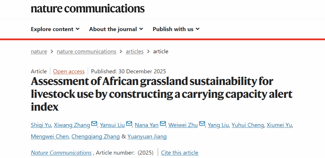 2025年12月30日国际顶级期刊Nature Communications发表必赢565net官网研究成果“Assessment of African grassland sustainability for livestock use by constructing a carrying capacity alert index”,该文定量评估了非洲地区畜牧用草可持续性。
